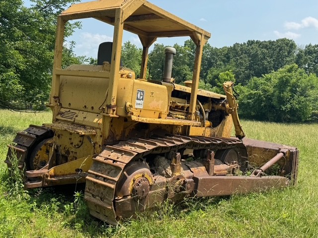 (1966) Cat D8H dozer with open Rops canopy, hyd straight blade (fair) & hyd tilt. Good U/C at approx. 60-70% (1 or 2 broken pads).