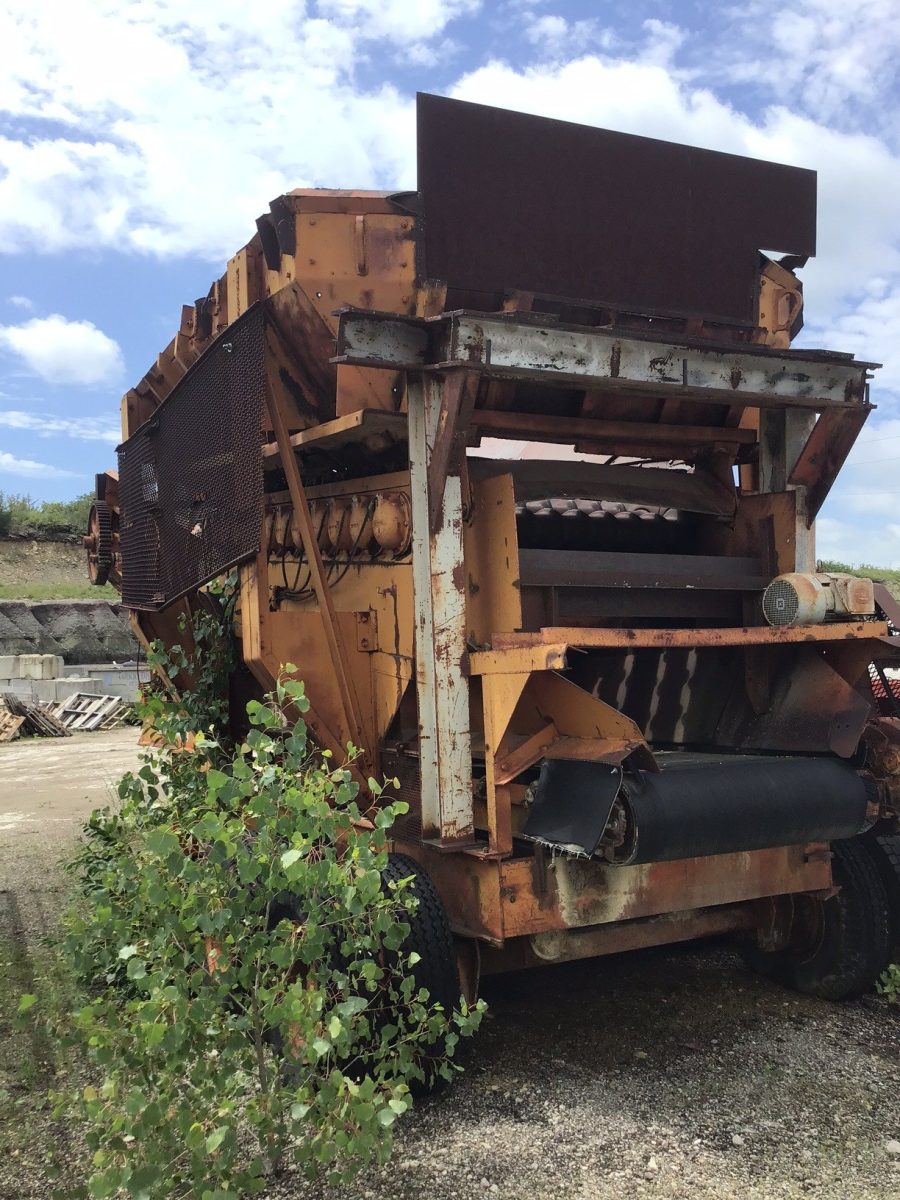Universal 48″ X 11 bar w/ 12.5″ pitch wobbler feeder consisting of 48″x18′ apron feeder (sn: 423X6) w/ a 9″ pitch for oversized discharge & rear discharge belt for fines. Electric power. All on tandem chassis.